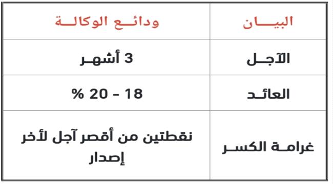 تصدر ودائع الوكالة بمبلغ 100 مليون كحد أدنى مسموح به للاكتتاب.