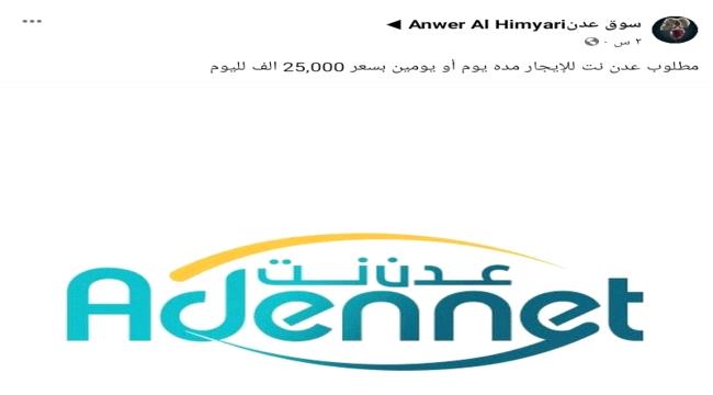 وقال الناشر: "مطلوب عدن نت للإيجار مده يوم أو يومين بسعر 25,000 الف لليوم".