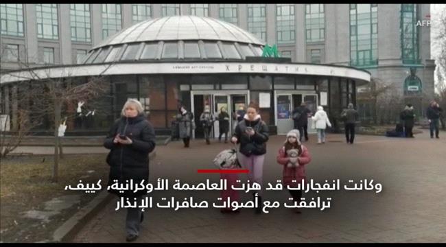 وكانت انفجارات قد هزت العاصمة الأوكرانية، كييف، ترافقت مع أصوات صافرات الإنذار، وسط فرار جماعي للسكان من المدينة.