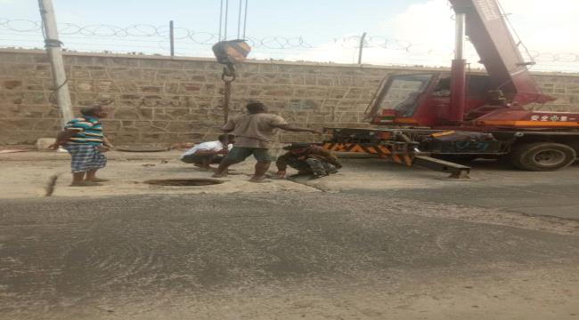 وفي سياق منفصل تستمر إدارة الصرف الصحي في المديرية وبتمويل من السلطة المحلية اعمال ترميم لمناهل الصرف الصحي في خط الميناء وإعادة تسويتها بما يضمن سلاسة المرور للسيارات في الطريق.