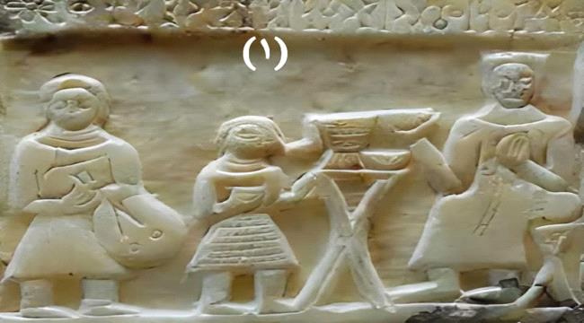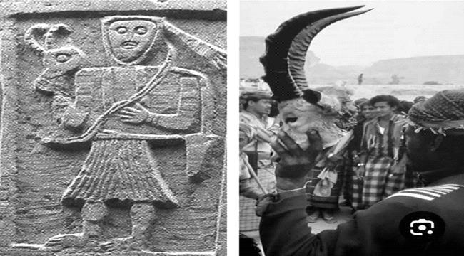 تمثال لشخصية يمنية بارزة في بلاط مملكته وامامه اثنان من امهر الموسيقيين الروحانيين احدهم بيده مزمار مقدس من قرن وعل وآخر بيده عود مصنوعه اوتاره من امعاء الوعل المقدس ولو علم الأقيال اليوم لماذا كان الوعل مقدسا" كرمزية روحية دينية عند القدماء لنحرقوا حول البحث عن خصائص الوعل الفدي العظيم الذي قدمته الملائكة لسيدنا إبراهيم عليه السلام لتفتدي به ابنه وهو ضحية البدن المقدسة قبل اتخاد المسلمين من الأنعام أضاحي فقد كان البدن وهو نوع من الوعوليات يقدم قربان لله يذبح ويتلى اسم الله عليه ثم يستخرج كل عضو منه لمهام قدسية بحثة فمثلاً قرنيه تستخدم كمزامير وإذان لآل ابراهيم وآل داؤود ليعلم الناس موعد الحج الأكبر ومن سرته اسفل بطنه يستخرج المسك الذي يدهنوا به احجارهم ومحاريبهم اثناء العبادة ومن اسم المسك اشتقت كلمة المسجد والمناسك ومنسك ونفسها بالإنجليزية موسك