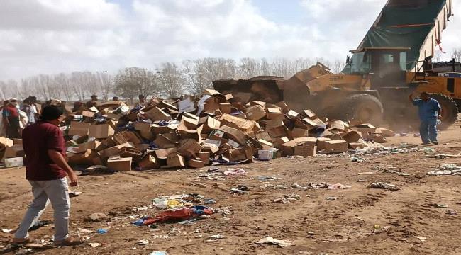 وأوضح نائب رئيس القسم، محمود عبدالله المفلحي، إن عملية الإتلاف - والتي تأتي ترجمة لتوجيهات مدير عام المنصورة، أحمد علي الداؤودي، - تمت في المكب الرئيس للقمامة في منطقة بئر النعامة بمديرية البريقة، وفقا للإجراءات القانونية، مبيناً أن المواد المتلفة تم ضبطها مؤخراً شملت "173" كرتون حلاوة طحينية تركية، و"32" كرتون حمص علب تركية منتهية الصلاحية، و"920" كرتون شامبو بلسم برازيلي خلل مصنعي.