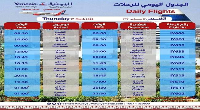 جدول مواعيد رحلات الخطوط الجوية اليمنية ليوم غد الخميس