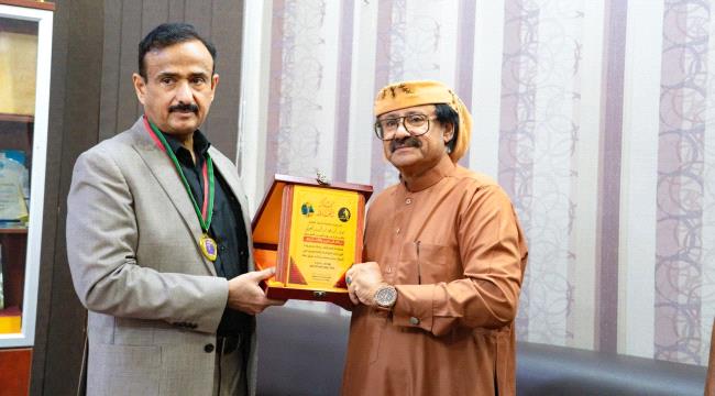 تسلّم محافظ محافظة شبوة، عوض محمد بن الوزير، درع وميدالية الوفاء، تقديراً لجهوده في دعم ورعاية قطاع الشباب والرياضة بالمحافظة، والدور الذي أسهم في إحد...