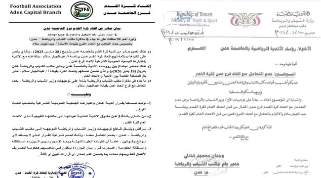 أصدر اتحاد كرة القدم بالعاصمة عدن مساء اليوم الإثنين تعميما مهما ردا على ما جاء في بيان مكتب الشباب والرياضة بعدن بشأن عدم التعامل مع اتحاد فرع بقيادة...